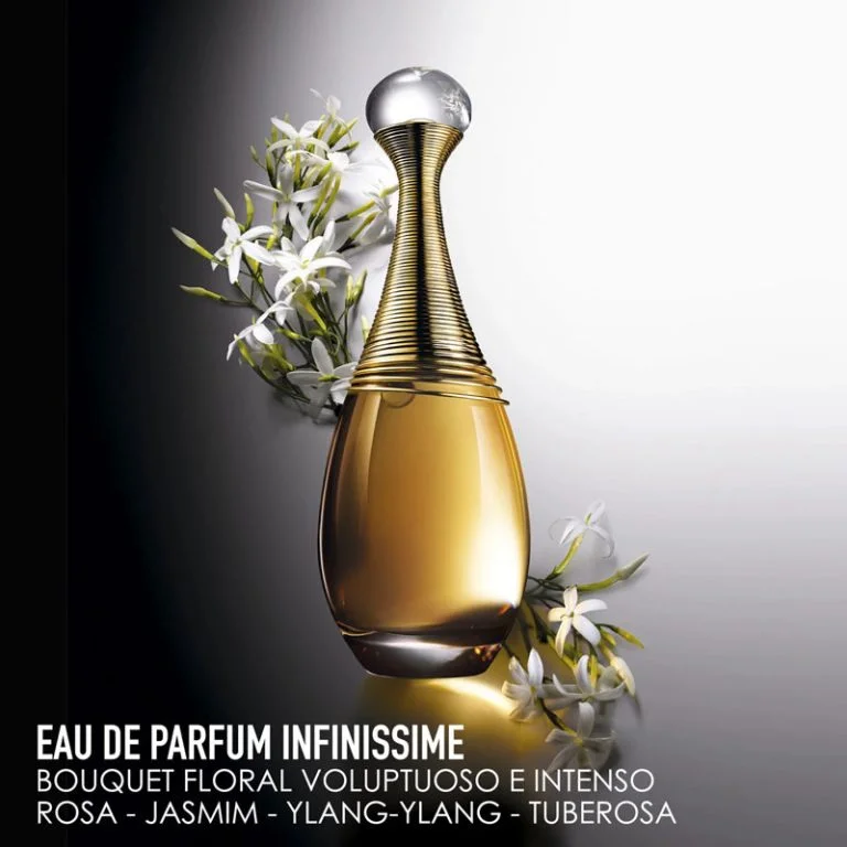 Inspiração: “J’adore Eau de Parfum Infinissime tem um charme inédito e voluptuoso graças à tuberosa de Grasse. Introduzindo-a na composição de J’adore, orquestrei um encontro: como se J’adore “seduzisse” a inquietante tuberosa, a tornasse sua, a reinventasse e a iluminasse. Revelando imediatamente uma feminilidade poderosa e assertiva.” François Demachy, perfumista criador de Dior.